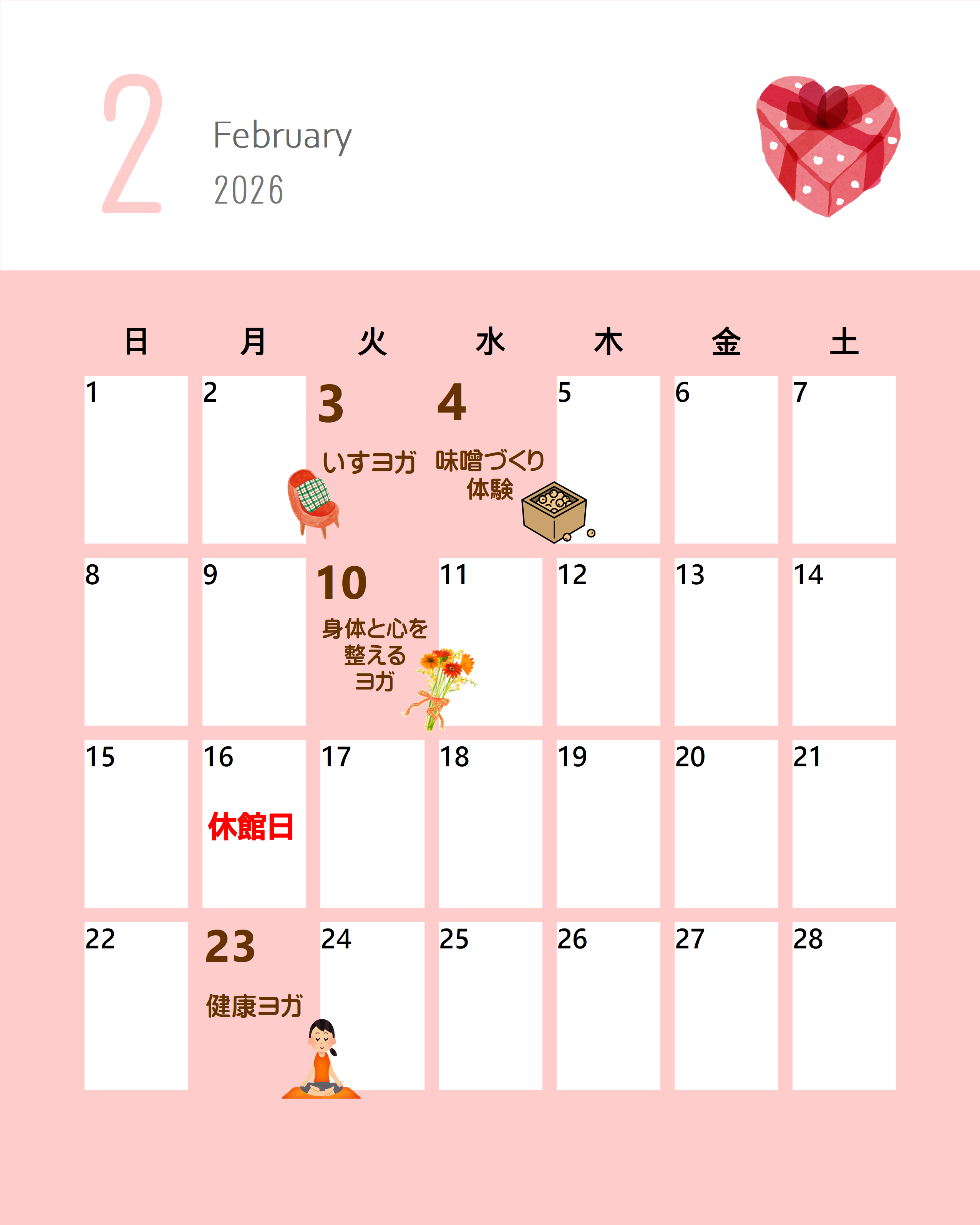 令和8年2月開催のイベントスケジュールです。